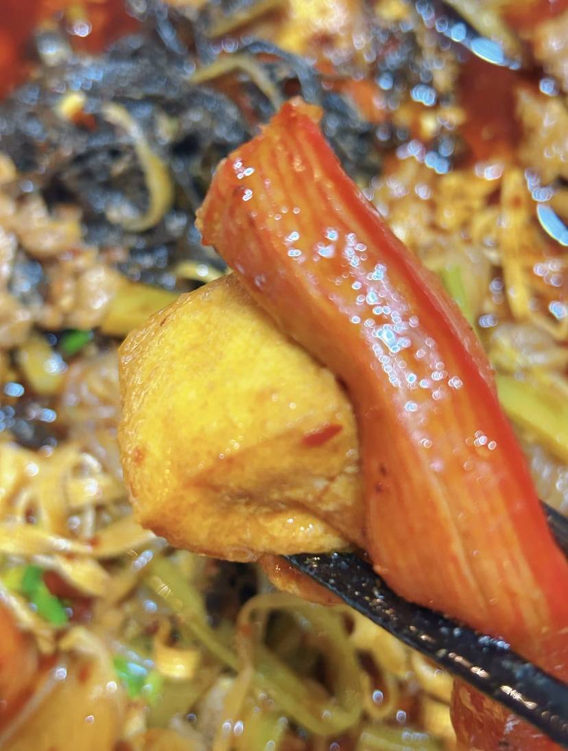 第二步:记住“一炒二煮三浇”的秘诀一炒:炒出灵魂红油,锅里放2大勺油,小火放入火锅底料慢慢炒化。看到这里你可能想问:“为什么还要炒?直接煮不行吗?”亲爱的,这一步是关键!炒过的底料香气会完全释放,红油也更亮更香。等底料完全融化,加入豆瓣酱炒出红油,再放入姜蒜、干辣椒、花椒和香料,小火炒1分钟,满屋飘香就是这时候!二煮:分门别类煮食材,倒入高汤或开水,大火烧开后转中火煮5分钟,让汤底味道融合。然后用漏勺捞出香料渣(这步别偷懒,不然吃的时候会咬到花椒哦!)。