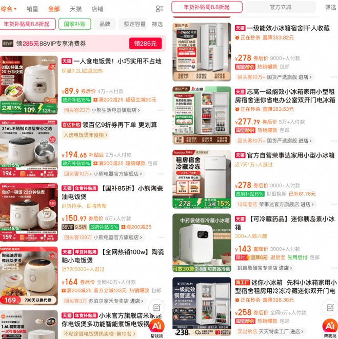 如果仔细观察,这样的现象在衣食住行等更多方面都有体现。居住上,30-50㎡的超小户型变得更受欢迎,匹配独居场景的各种迷你家电走向市场,小熊电器就是“孤独经济”影响下走出的新兴品牌,其产品多以适合1-2人使用的小家电为主。最新的财报数据显示,2025年前三季度,小熊电器的净利润达到2.45亿元,同比增长36.49%。且随着这类需求被关注,家电市场的迷你产品线越来越多,比如电饭煲最小的已经做到0.6L,冰箱也出现了1.2米的超小冰箱。