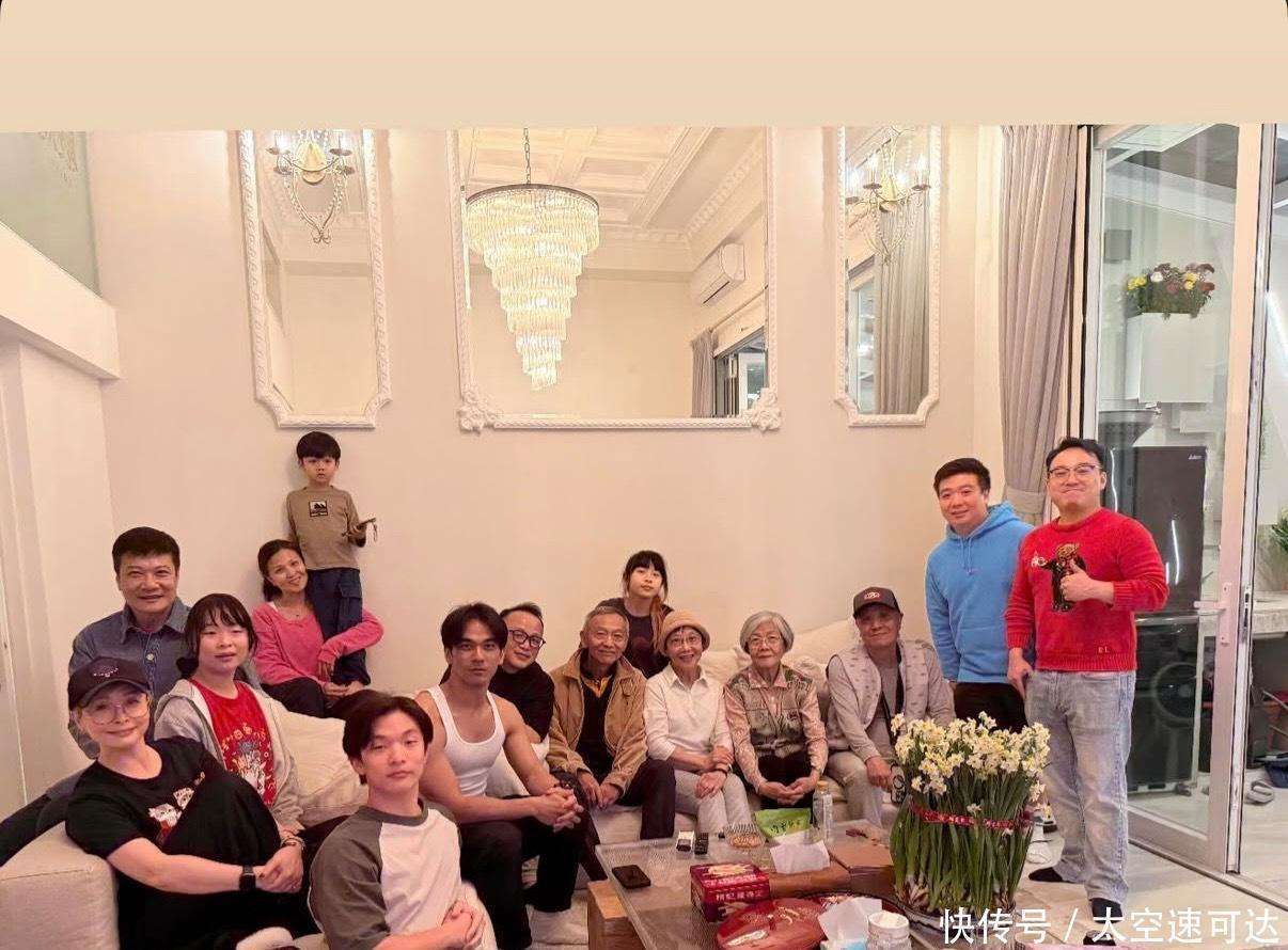 这次聚会的照片是钱小豪的长子庞景峰晒出来的,照片中的家族团聚热闹非凡,真是让人感受到满满的温情。第一张照片拍摄的是豪宅的大厅,必须得说,这个大厅的装修堪称奢华,天花板特别高,气派十足,挂着一盏闪耀的巨型水晶吊灯,晶莹剔透,光芒四射。墙上还装有三面巨大的镜子,瞬间让整个大厅显得更加宽敞。十来口人挤在这样一个大厅里拍合照,居然一点也不显得拥挤,大家围坐在沙发上,茶几上摆着新春必备的水仙花和各种小吃、饮料,轻松自在,画面温暖而和谐。照片里,钱小豪的母亲、姐姐、哥哥和弟弟都能看到,唯一缺席的,就是钱小豪和他的妻子。相较之下,庞景峰这位家族第三代的代表可谓是镜头焦点,35岁的他穿着背心,结实的胸肌和手臂肌肉十分抢眼,完全吸引了视线。